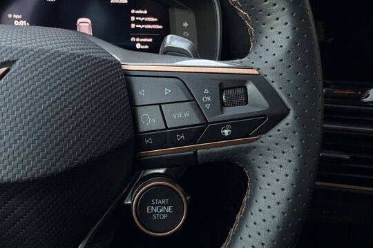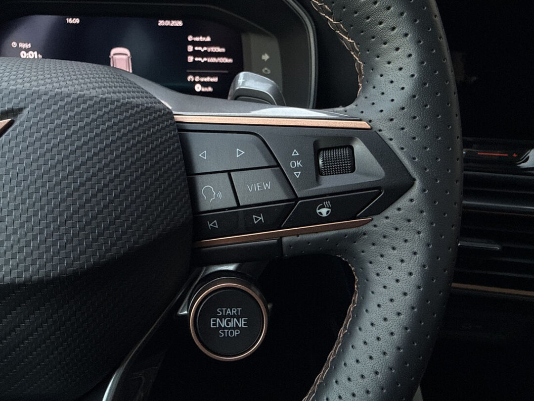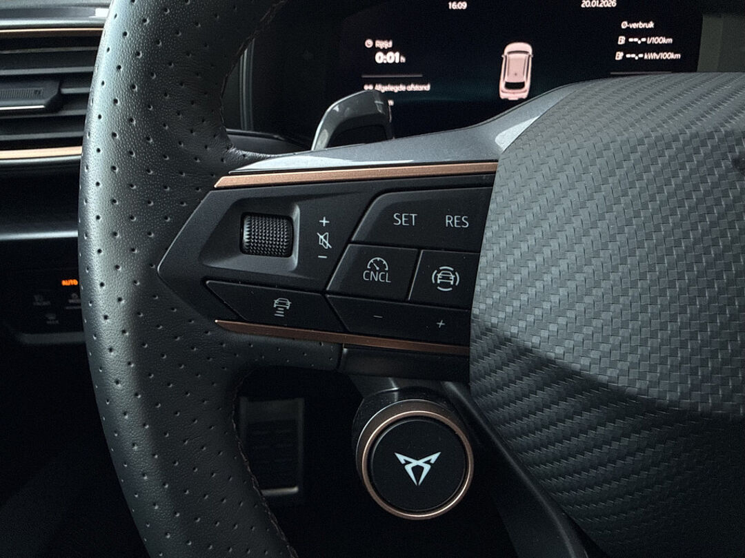 Ervaar de wonderen van de digitale mobiliteitswereld waarbij alles wat u wenst op het digitale dashboard verschijnt. Altijd achter zicht, nooit meer nekkramp! De achteruitrijcamera maakt het supermakkelijk. Adaptive cruise control is veilig en comfortabel. De snelheidsregelaar houdt automatisch afstand tot het voertuig dat voor u rijdt. De radio harder of zachter zetten of iemand uit uw contactenlijst bellen. Dankzij de spraakbediening doet u dit allemaal met uw stem. De auto is voorzien van een trekhaak en is een uitstekende caravantrekker. Deze CUPRA is voorzien van connected drive services, navigatiesysteem, WIFI-hotspot, electronic climate control, draadloos opladen en DAB ontvangst.