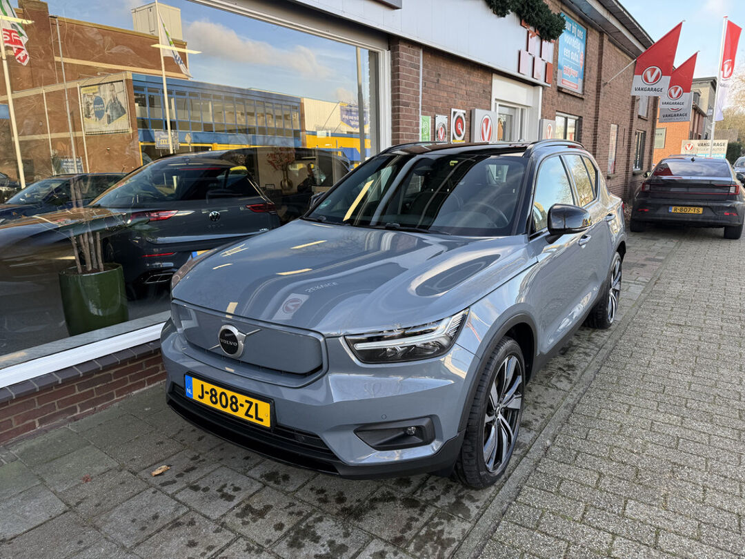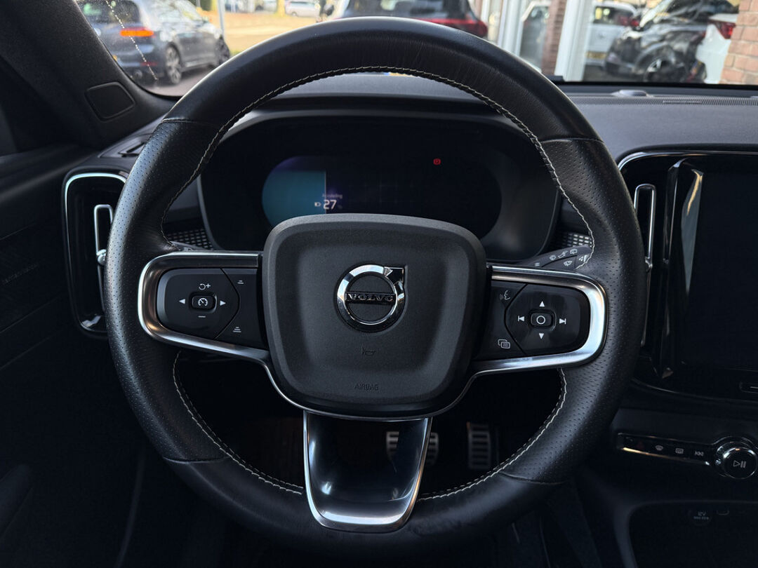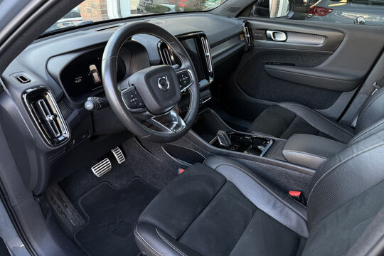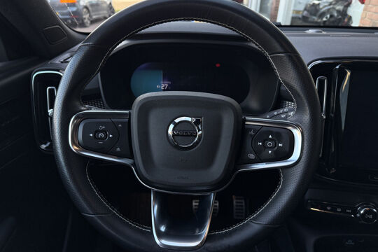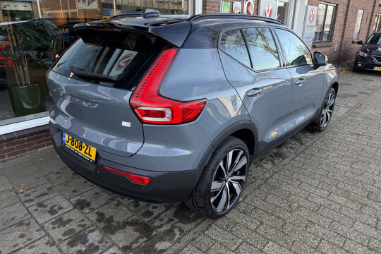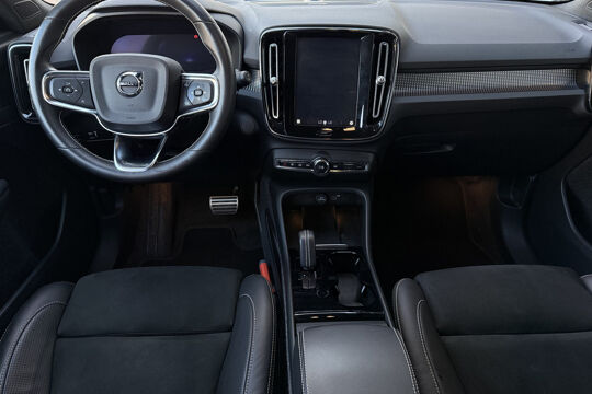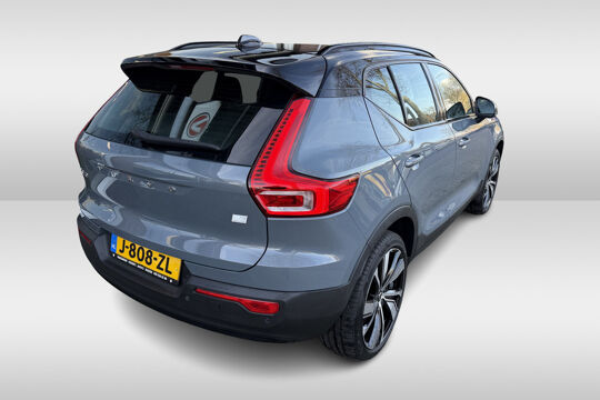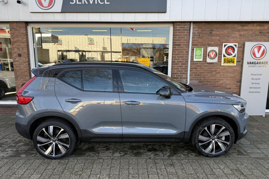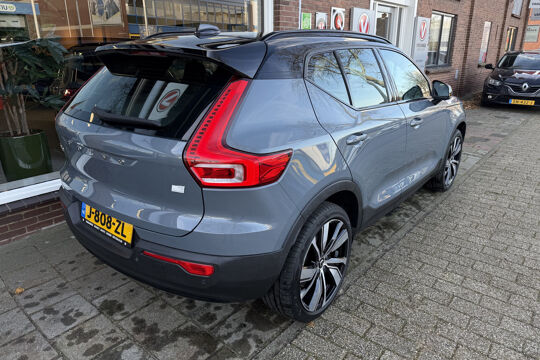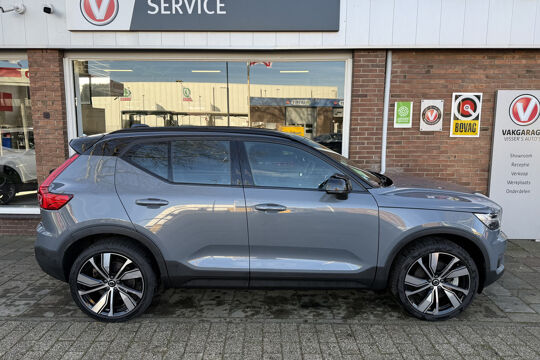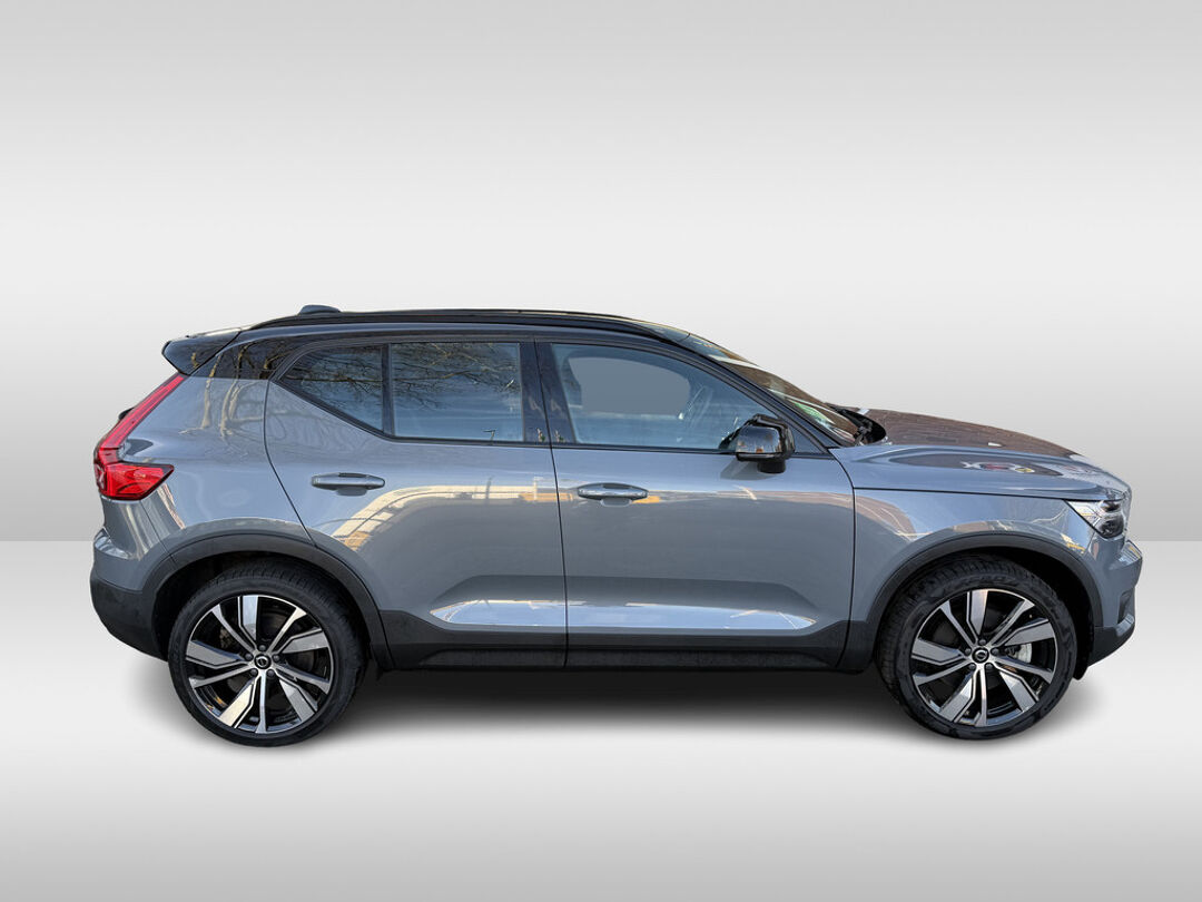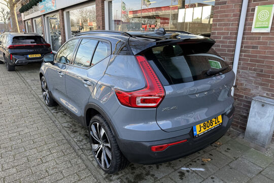 Kijk naar de onvergelijkbare vormgeving. De Volvo XC40 is een elektrische auto die zijn bijzondere karakter niet voor de buitenwereld verbergt. De elektromotor laat u geluidloos over de weg gaan. Wat een verademing, en zoveel power ook nog! Een krachtige motor geeft deze auto zijn sportieve prestaties. Bestuurder en bijrijder krijgen een warm welkom: deze Volvo XC40 is voorzien van verwarmbare voorstoelen. De bagageruimte is toegankelijk via een comfortverhogende elektrische achterklep. De uitmonstering van deze auto wordt gecompleteerd door onder meer 19 inch lichtmetalen velgen, LED koplampen, sportonderstel, in delen neerklapbare achterbank, LED-achterlichten en verstelbare lendensteunen.