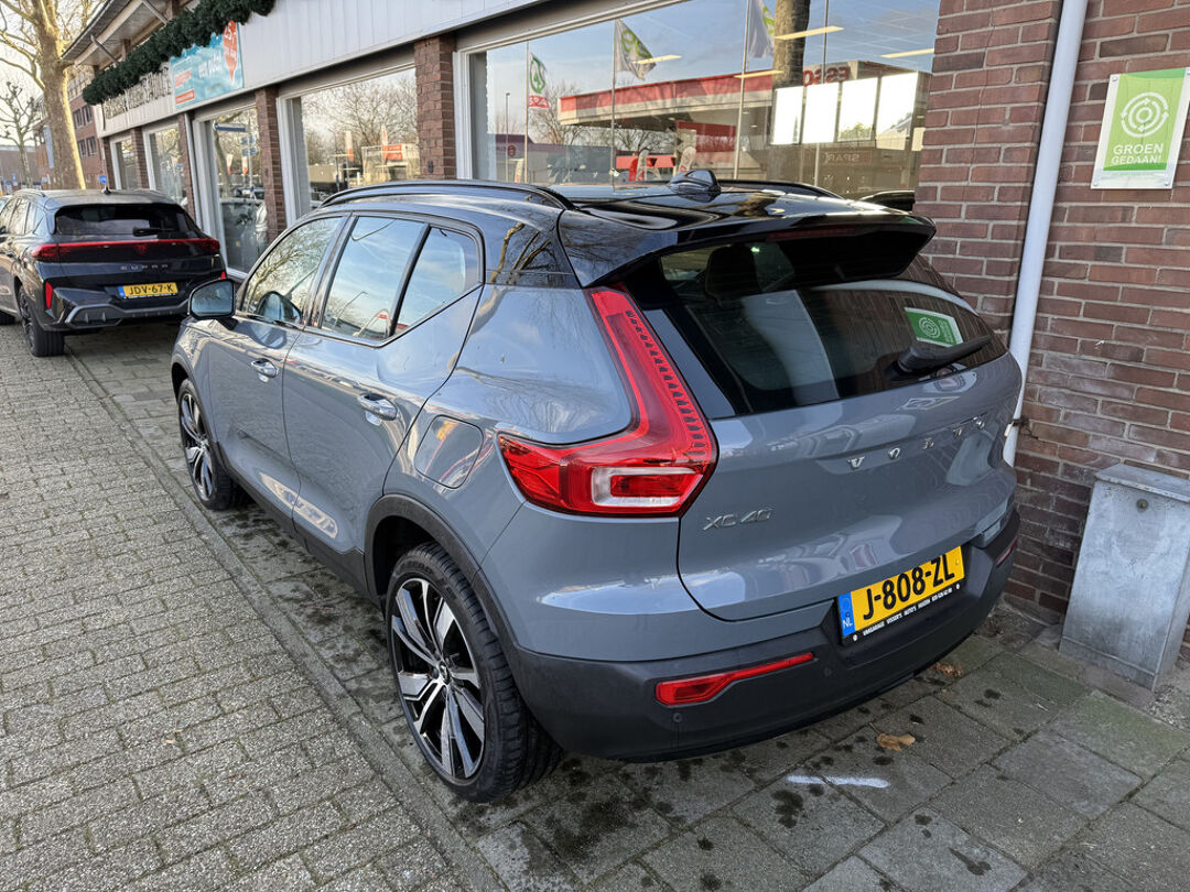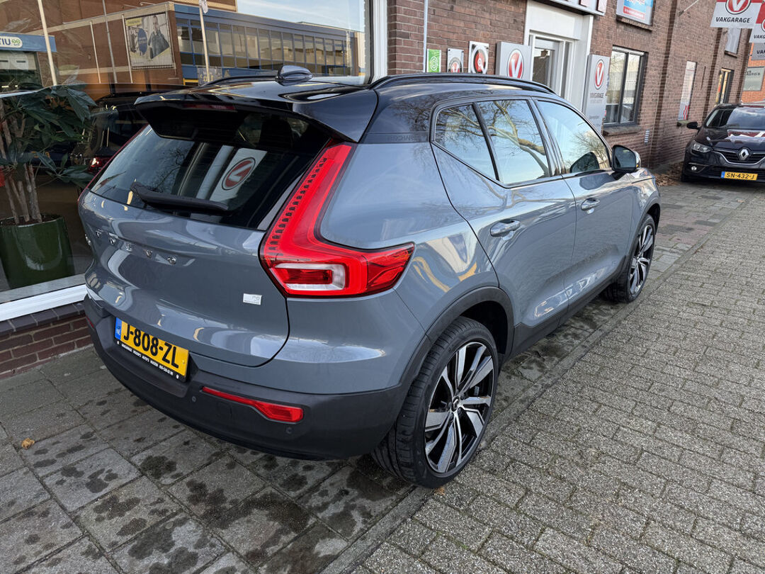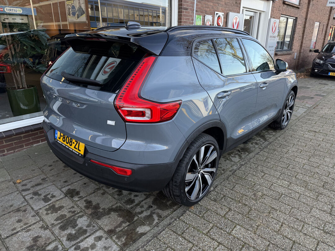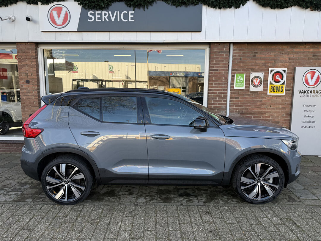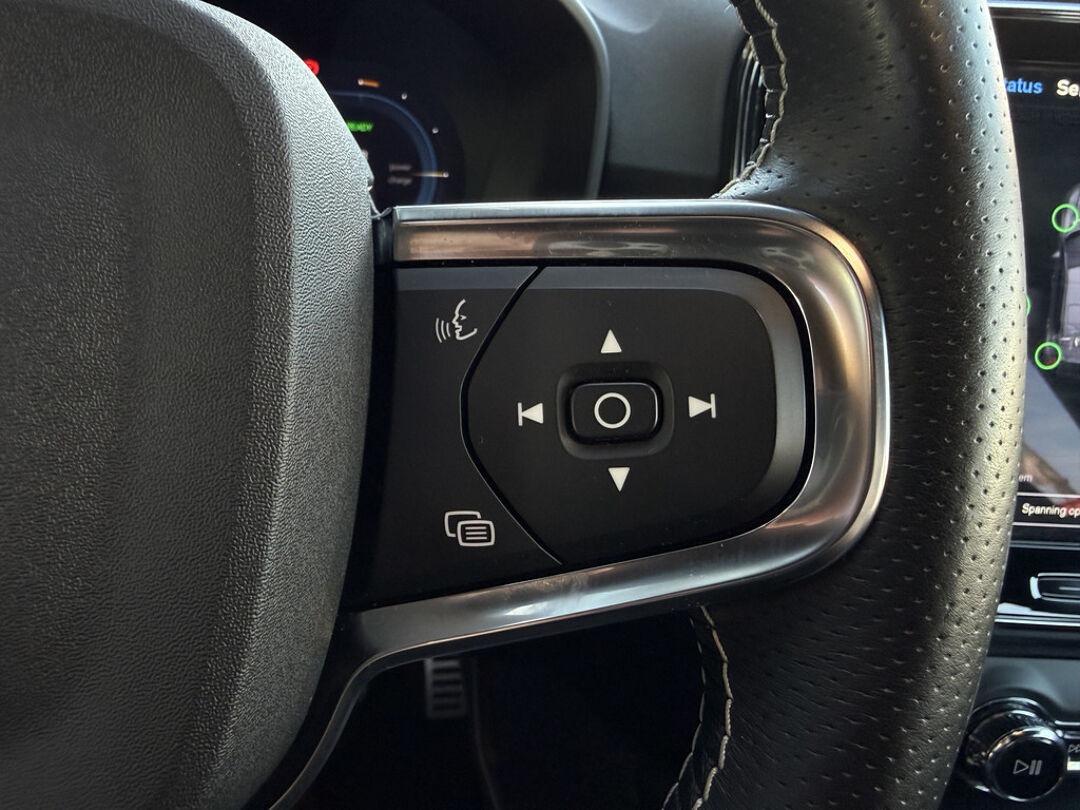 Kijk naar de onvergelijkbare vormgeving. De Volvo XC40 is een elektrische auto die zijn bijzondere karakter niet voor de buitenwereld verbergt. De elektromotor laat u geluidloos over de weg gaan. Wat een verademing, en zoveel power ook nog! Een krachtige motor geeft deze auto zijn sportieve prestaties. Bestuurder en bijrijder krijgen een warm welkom: deze Volvo XC40 is voorzien van verwarmbare voorstoelen. De bagageruimte is toegankelijk via een comfortverhogende elektrische achterklep. De uitmonstering van deze auto wordt gecompleteerd door onder meer 19 inch lichtmetalen velgen, LED koplampen, sportonderstel, in delen neerklapbare achterbank, LED-achterlichten en verstelbare lendensteunen.