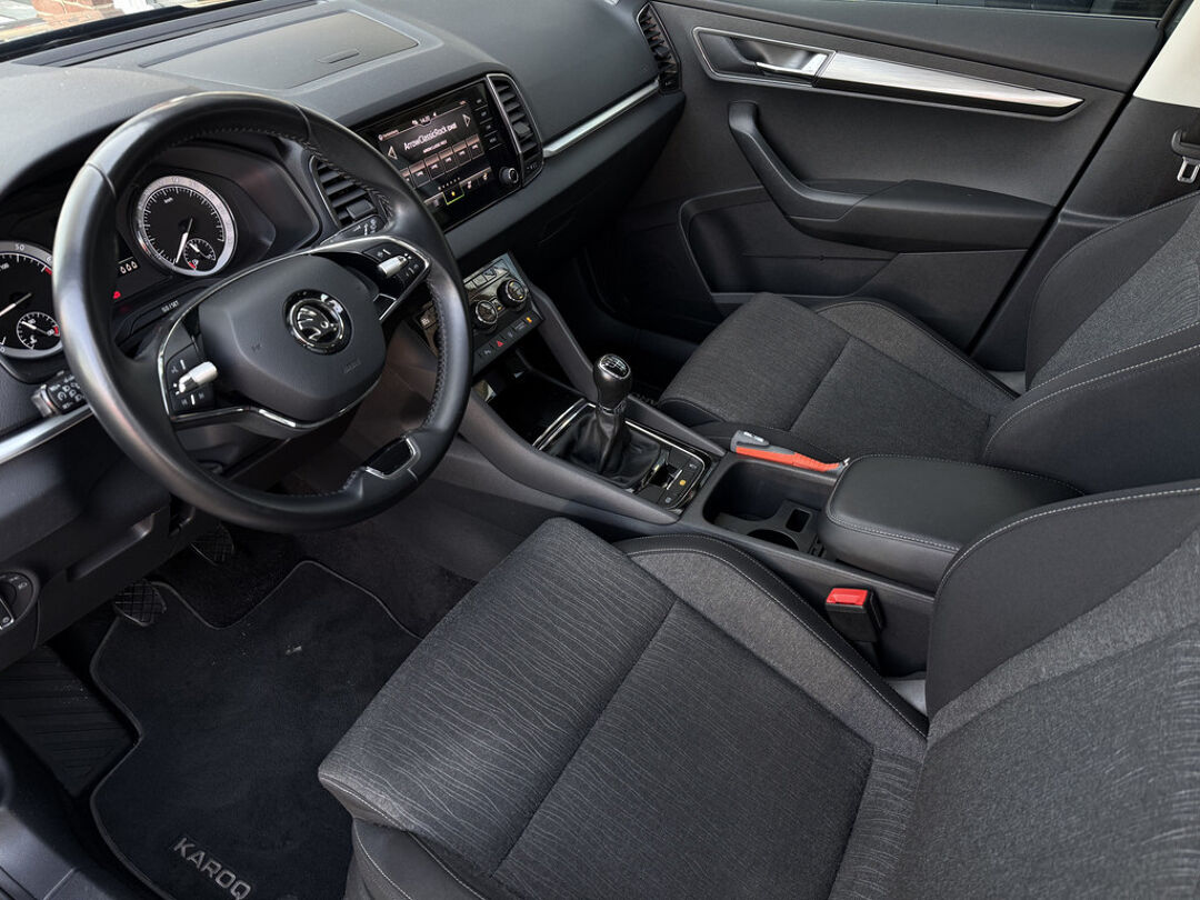 Alle technologie in de ŠKODA Karoq is er op gericht om uw rit veilig en gemakkelijk te laten verlopen. Dit mooie exemplaar komt uit 2021. Met zijn benzinemotor en handgeschakelde zesversnellingsbak is dit een prima auto voor nog vele kilometers. U wordt in deze auto ook getrakteerd op 17 inch lichtmetalen velgen, Full LED koplampen, in hoogte verstelbare voorstoelen, in delen neerklapbare achterbank, LED-achterlichten en verstelbare lendensteunen.