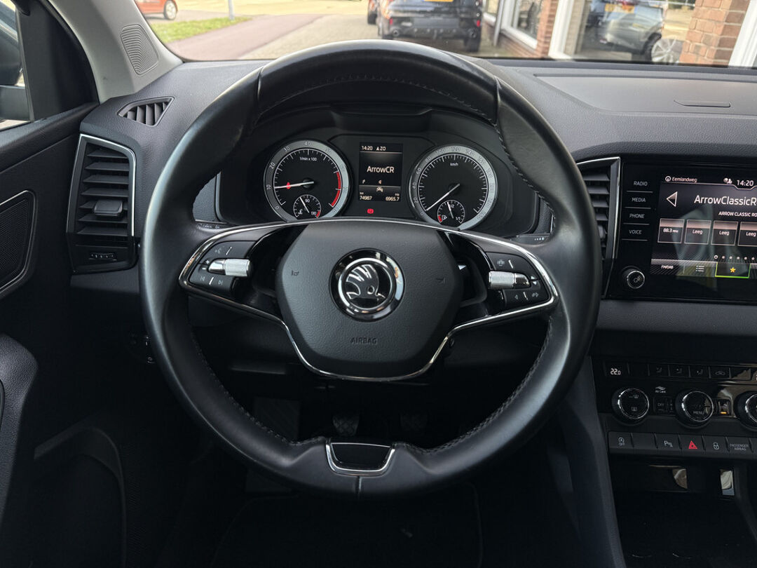 Het doordachte ontwerp van de ŠKODA Karoq maakt hem tot een comfortabele en veelzijdige auto voor het hele gezin. Dit exemplaar heeft 74981 kilometer gelopen en is van het bouwjaar 2021. Een krachtige driecilinder benzinemotor zorgt voor de aandrijving van deze SUV. Bij de zeer complete uitrusting van deze auto behoren ook 17 inch lichtmetalen velgen, Full LED koplampen, in hoogte verstelbare voorstoelen, in delen neerklapbare achterbank, LED-achterlichten en verstelbare lendensteunen.