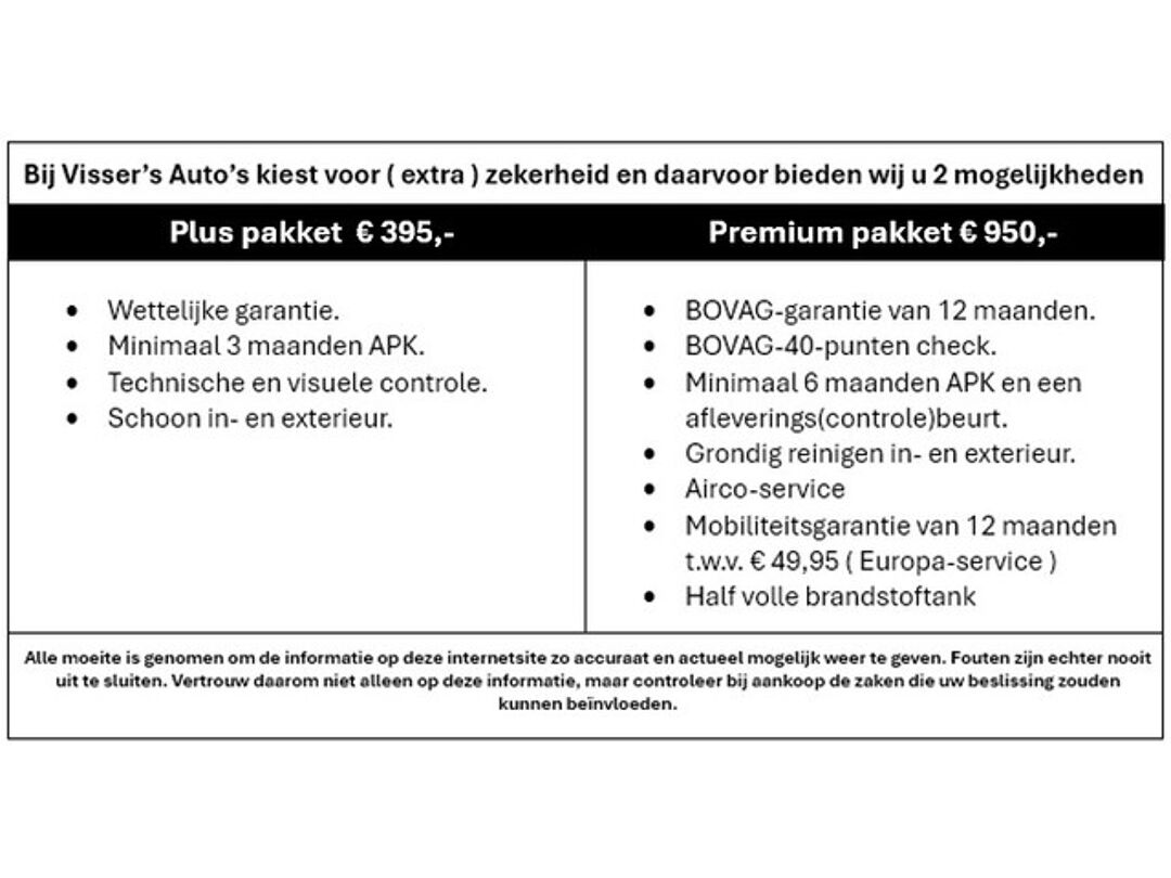 Bij Visser’s Auto’s kiest voor ( extra ) zekerheid en daarvoor bieden wij u 2 mogelijkheden