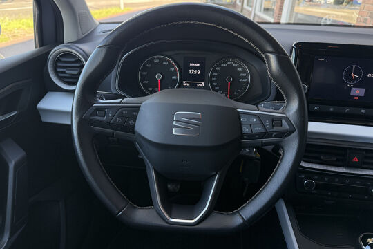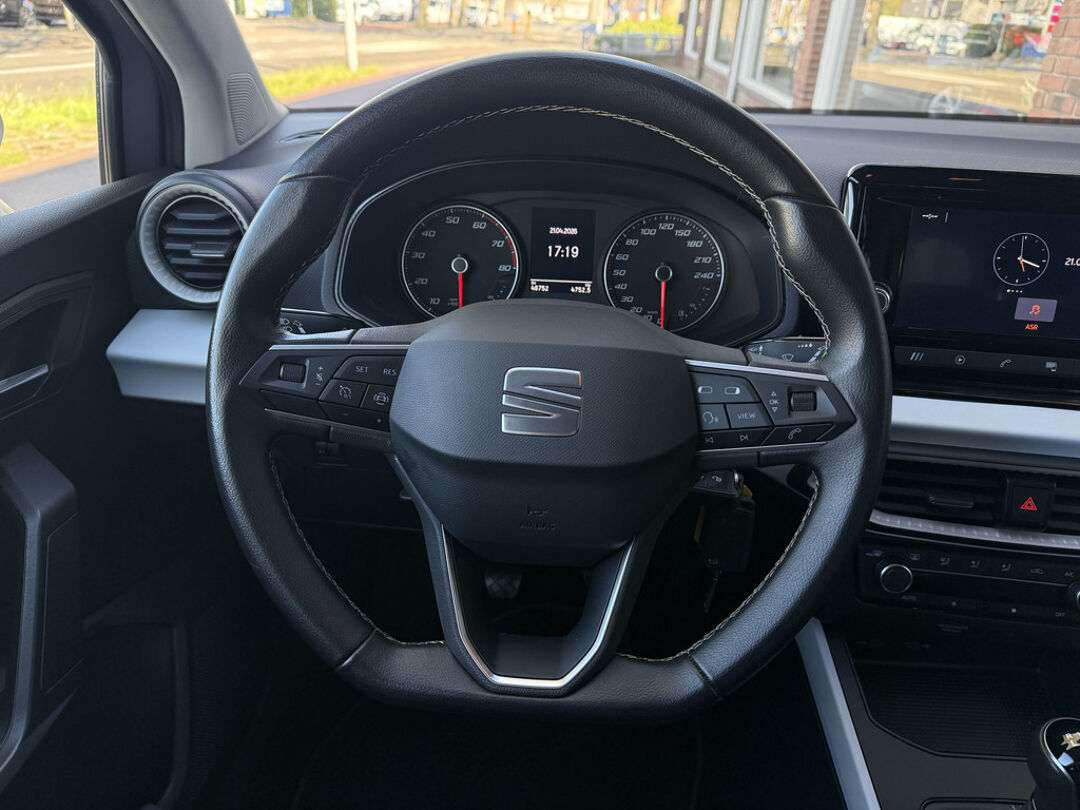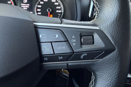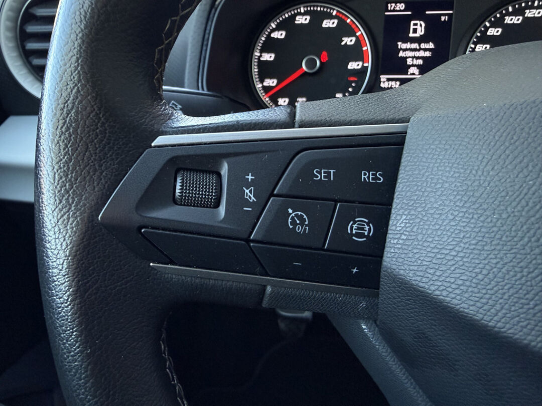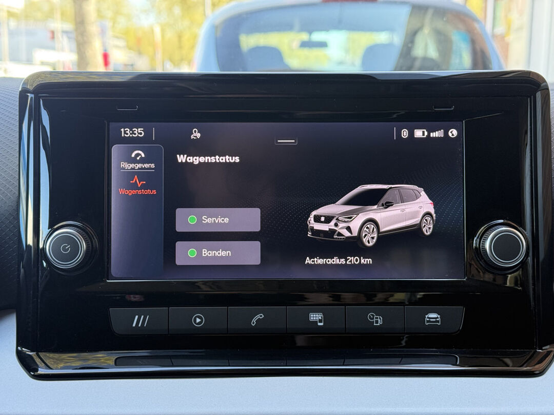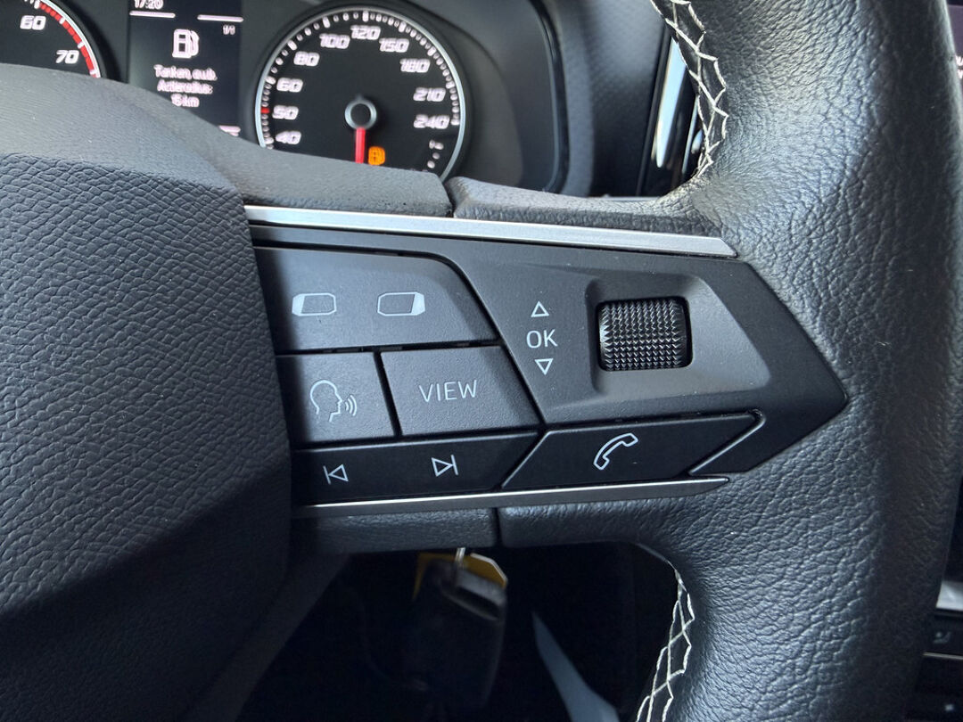 Met adaptive cruise control houdt deze auto automatisch afstand tot uw voorligger. Locatie, motorconditie, storingen... via Connected Services krijgt u alle vitale info over de auto door. Ook handig bij pech! Terwijl het navigatiesysteem de ideale route voor u uitstippelt, geniet u van de kwaliteit van het audiosysteem met DAB-ontvangst. De bediening is bovendien gemakkelijk via knoppen op het stuur. Of het buiten nu warm is of koud, dankzij automatische airconditioning is het binnen altijd behaaglijk. Inparkeren zonder angst voor schade. De parkeersensoren helpen u om moeiteloos in de kleinste parkeervakken te manoeuvreren. Met regensensor, automatisch dimmende binnenspiegel, lederen stuur, isofix-aansluiting, centrale deurvergrendeling met afstandsbediening en boordcomputer is deze SEAT helemaal compleet.
