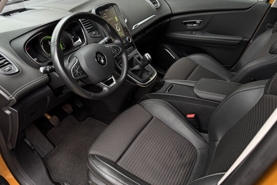 Zoals u mag verwachten van deze Renault Scénic is hij uitgerust met een reeks aan actieve veiligheidssystemen. De actuele snelheidslimiet, een inhaalverbod en andere verkeersborden; de verkeersborddetectie ondersteunt u tijdens elke rit. Het Lane-keeping systeem zorgt voor een automatisch constante positie binnen de rijstrook. Afdwalen is uitgesloten. Het laatste wat u wilt is dat u achter het stuur indommelt. Om dat te voorkomen is deze auto uitgerust met vermoeidheidsherkenning. In deze Renault vinden we verder een dodehoekdetectie, hill hold functie, autonoom remsysteem en bandenspanningcontrolesysteem.