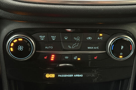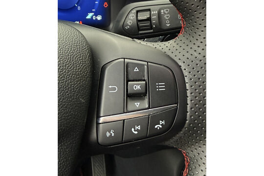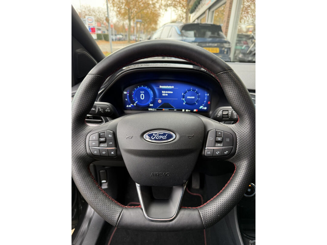 In één oogopslag zijn alle vitale functies afleesbaar dankzij het digitale dashboard. Afstand schatten bij het achteruitrijden? Niet nodig. U weet het precies, dankzij de achteruitrijcamera. In deze auto kunt u de belangrijkste functies bedienen met uw stem. In het zeldzame geval van een storing weet u nog eerder dan de monteur wat er mankeert. Uw smartphone met remote services geeft direct inzicht. Beste route, verwachte aankomsttijd: uw eigen full map navigatiesysteem vertelt u alles! U bent in deze Ford ook voorzien van automatische airconditioning, draadloos opladen, DAB ontvangst, regensensor, cruise control met snelheidsbegrenzer en keyless entry.