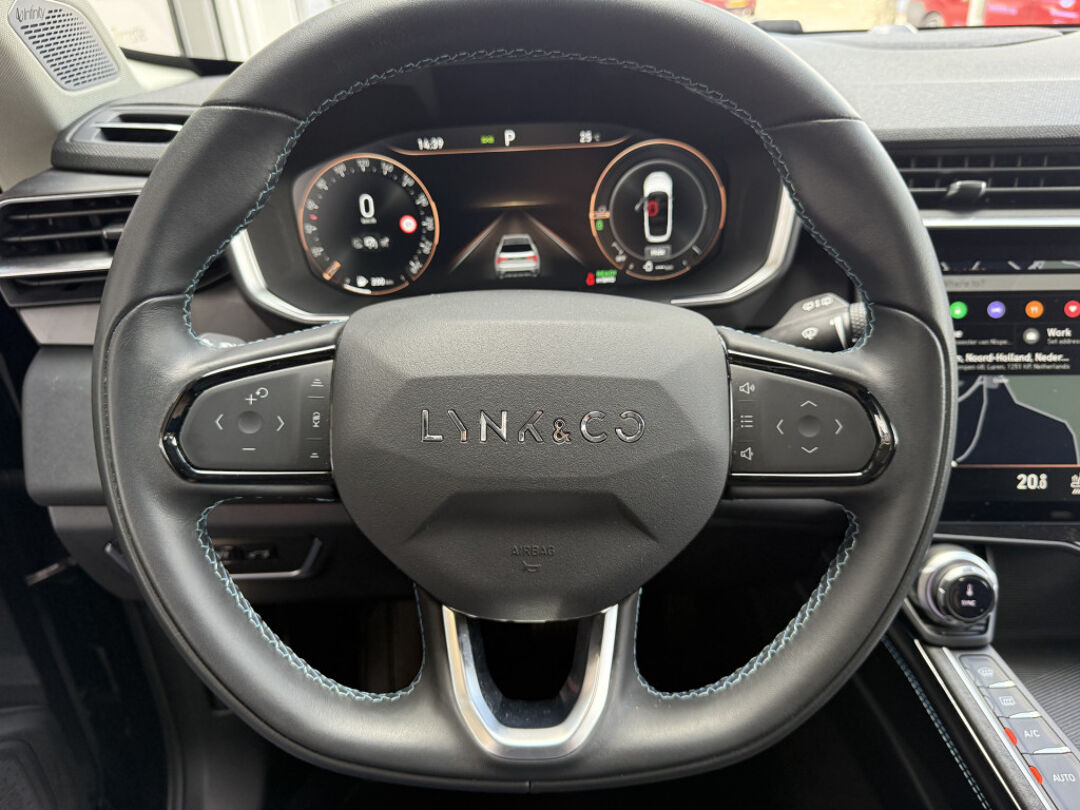 Stel de interface voor uw cockpit naar wens in met het digitale dashboard van deze auto. Adaptive cruise control houdt de ingestelde snelheid vast en houdt afstand tot het voertuig voor u. Kop aan kont langzaam rijden: dan is afstand houden soms lastig. De file assistent helpt en zorgt automatisch voor veilige ruimte tot de voorligger. Ook als die tot stilstand komt. De auto is voorzien van een trekhaak en is een uitstekende caravantrekker. Onderweg kunt u veilig genieten van het audio-installatiesysteem met DAB-radio en het full map navigatiesysteem. Want in deze Lynk & Co bedient u ze vanaf het stuurwiel of met uw stem. Ook WIFI-hotspot, achteropkomend verkeer waarschuwing, automatische airconditioning, draadloos opladen, parkeersensoren achter en regensensor horen tot de voorzieningen op deze auto.