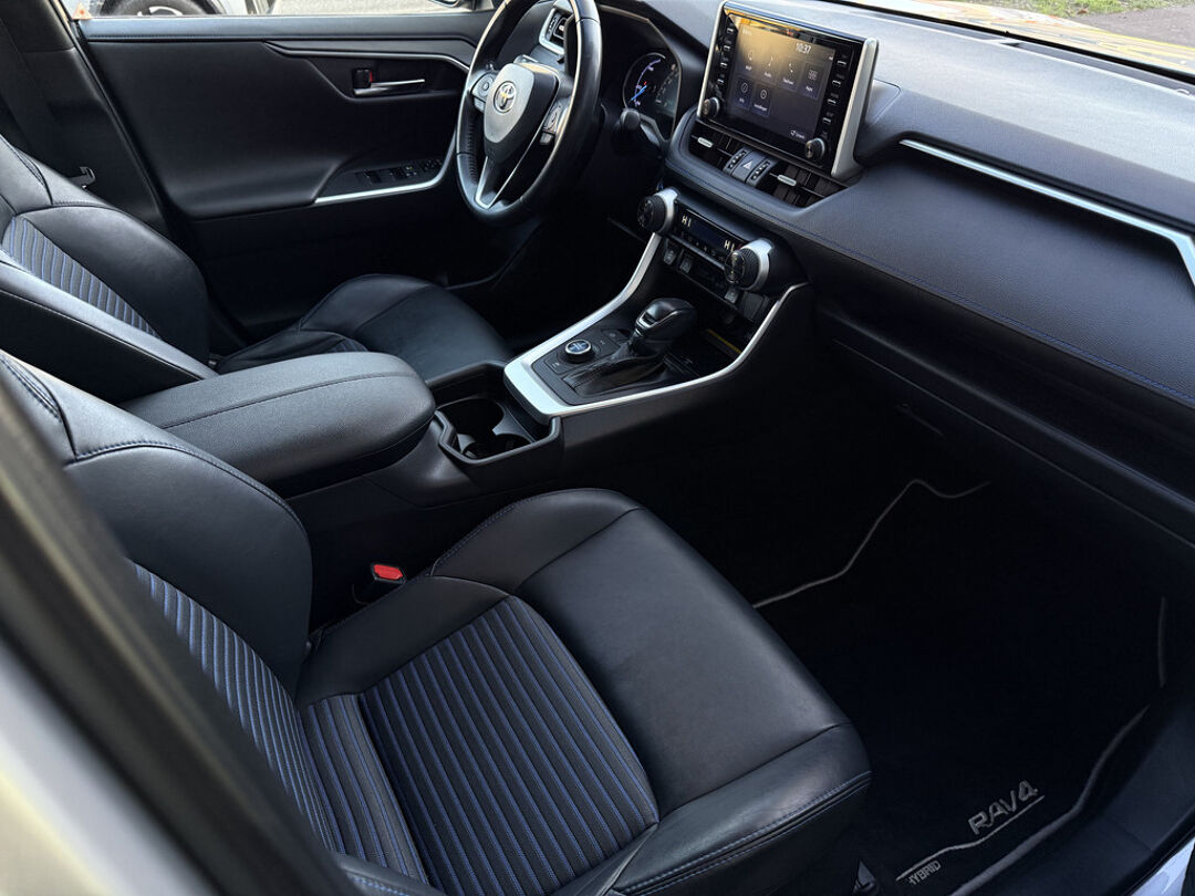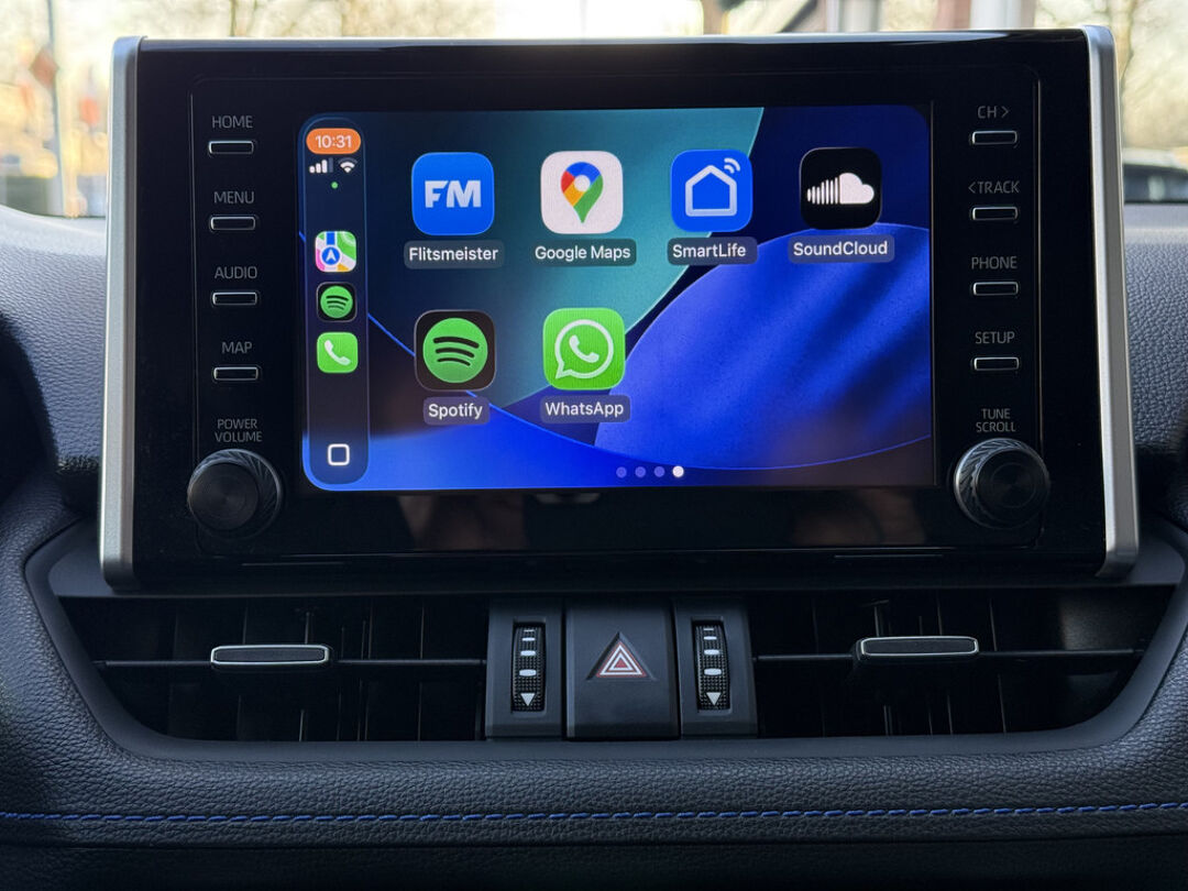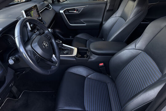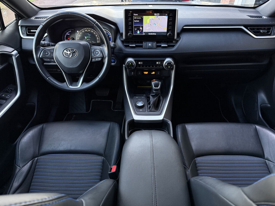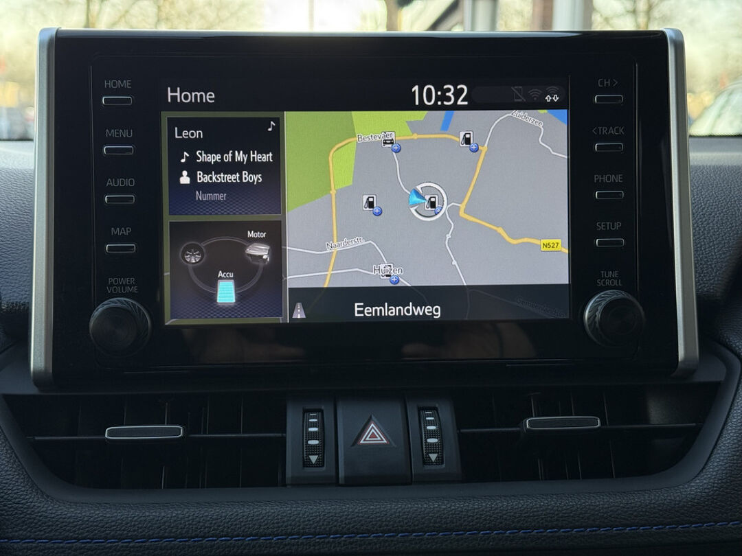 Deze Toyota RAV4 maakt een voortreffelijke indruk. Hiermee mag je gezien worden in de stad én op de weg! Voor de aandrijving van deze SUV zorgen een viercilinder benzinemotor en een automatische transmissie. Het lederen interieur geeft deze auto luxe en klasse. Tijdens gure dagen is het prettig zitten in de verwarmbare voorstoelen. Relaxt én fit op weg? Dan geniet u zeker van de comfortstoelen. Een praktische extra is de elektrisch bedienbare achterklep die opent en sluit met een druk op de knop. Bij de uitrusting van deze Toyota horen onder meer 18 inch lichtmetalen velgen, LED koplampen, trailer assistent, zwarte hemelbekleding, dakspoiler en donker getint glas achter.
