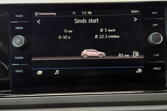 Adaptive cruise control is veilig en comfortabel. De snelheidsregelaar houdt automatisch afstand tot het voertuig dat voor u rijdt. U bedient het full map navigatiesysteem en het audio-installatiesysteem met DAB-radio via knoppen op het stuur. Zo kunt u steeds uw aandacht gericht houden op de weg. Aan boord van deze Volkswagen Polo is een achteropkomend verkeer waarschuwing voor extra veiligheid. Het hele jaar door zorgt airconditioning voor een prettige temperatuur. Natuurlijk behoren WIFI-hotspot, lederen stuur, centrale deurvergrendeling met afstandsbediening, boordcomputer en lederen versnellingspook ook tot de uitrusting van deze complete auto.