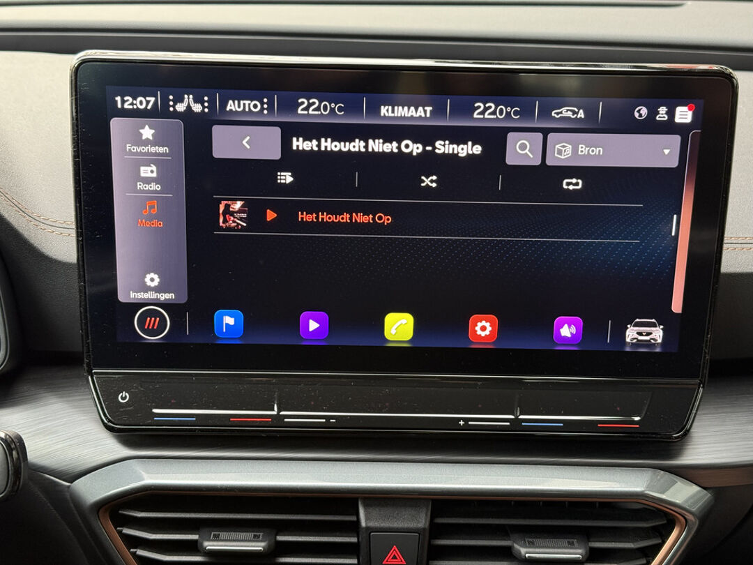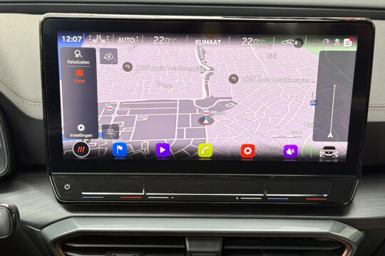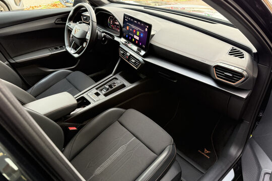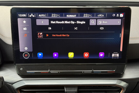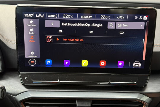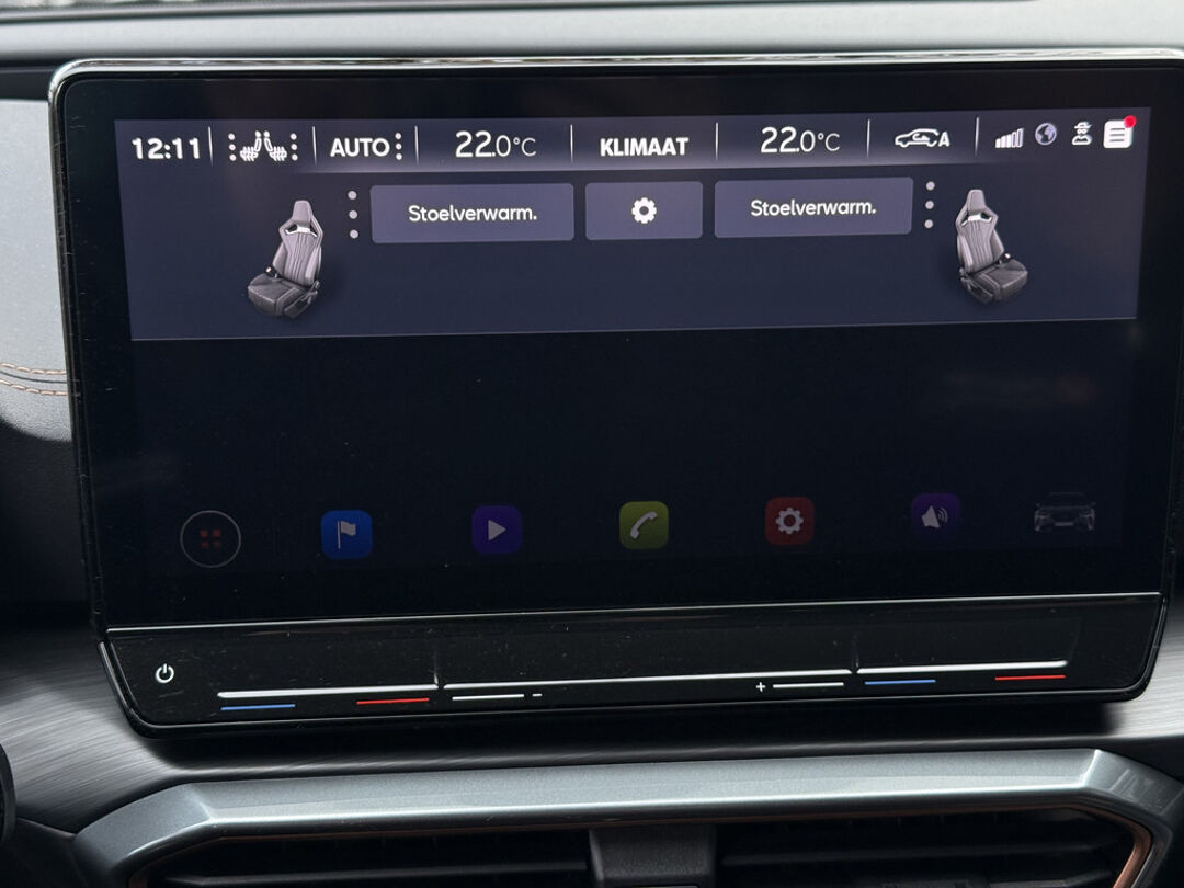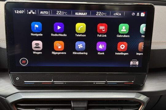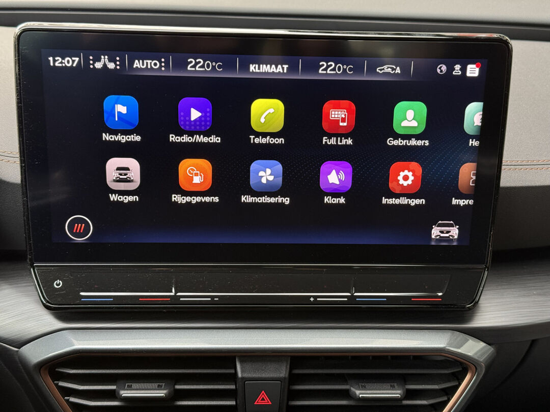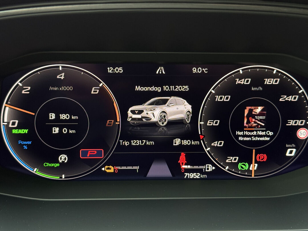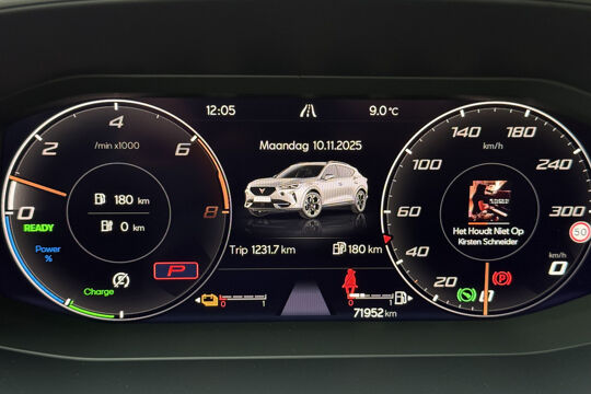 Zoals u mag verwachten van deze CUPRA Formentor is hij uitgerust met een reeks aan actieve veiligheidssystemen. De camera van de verkeersborddetectie herkent verschillende soorten verkeersborden en toont deze op het dashboard. Met het Lane-keeping systeem komt u nooit per ongeluk buiten de rijstrook. Onbedoeld bumperkleven is er niet bij, dankzij de forward collision warning. Die waarschuwt direct als een botsrisico met uw voorligger dreigt. Ook helpen het dodehoekdetectie, hill hold functie, vermoeidheidsherkenning, autonoom remsysteem en bandenspanningcontrolesysteem, uw rit tot een veilige rit te maken.