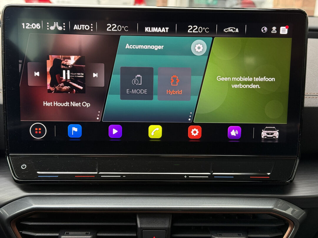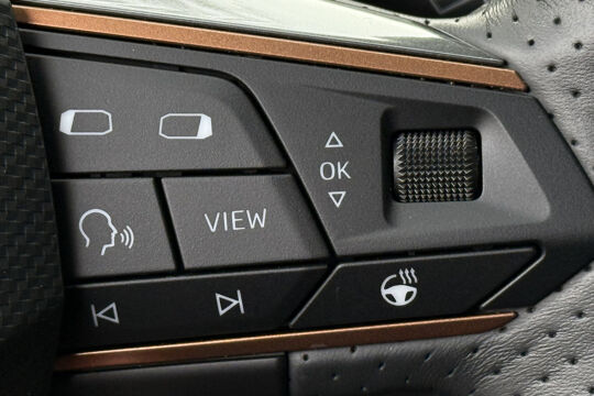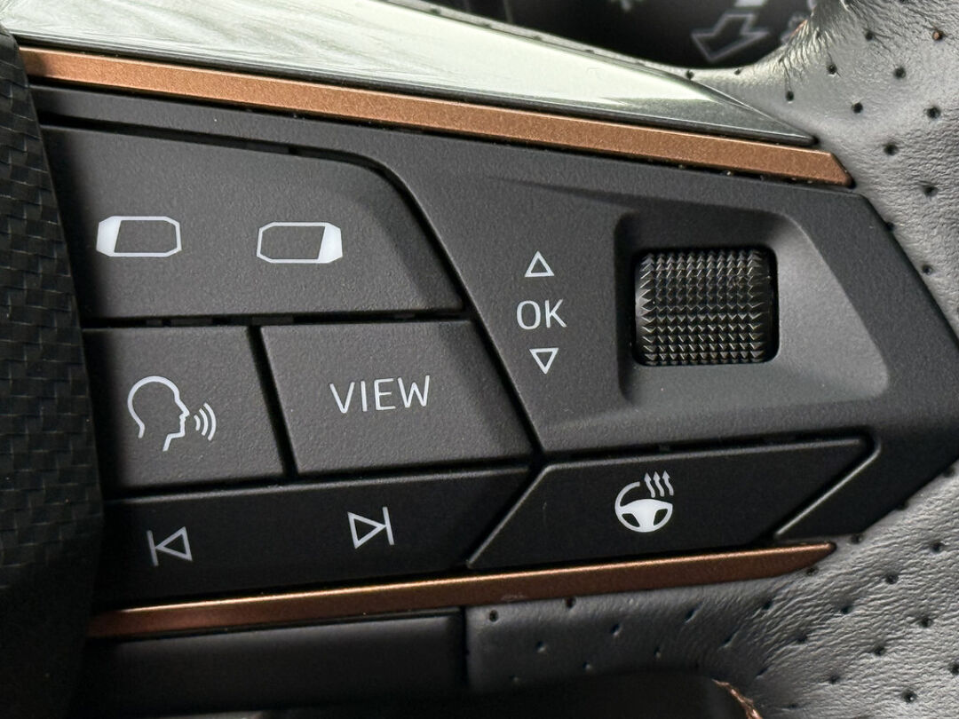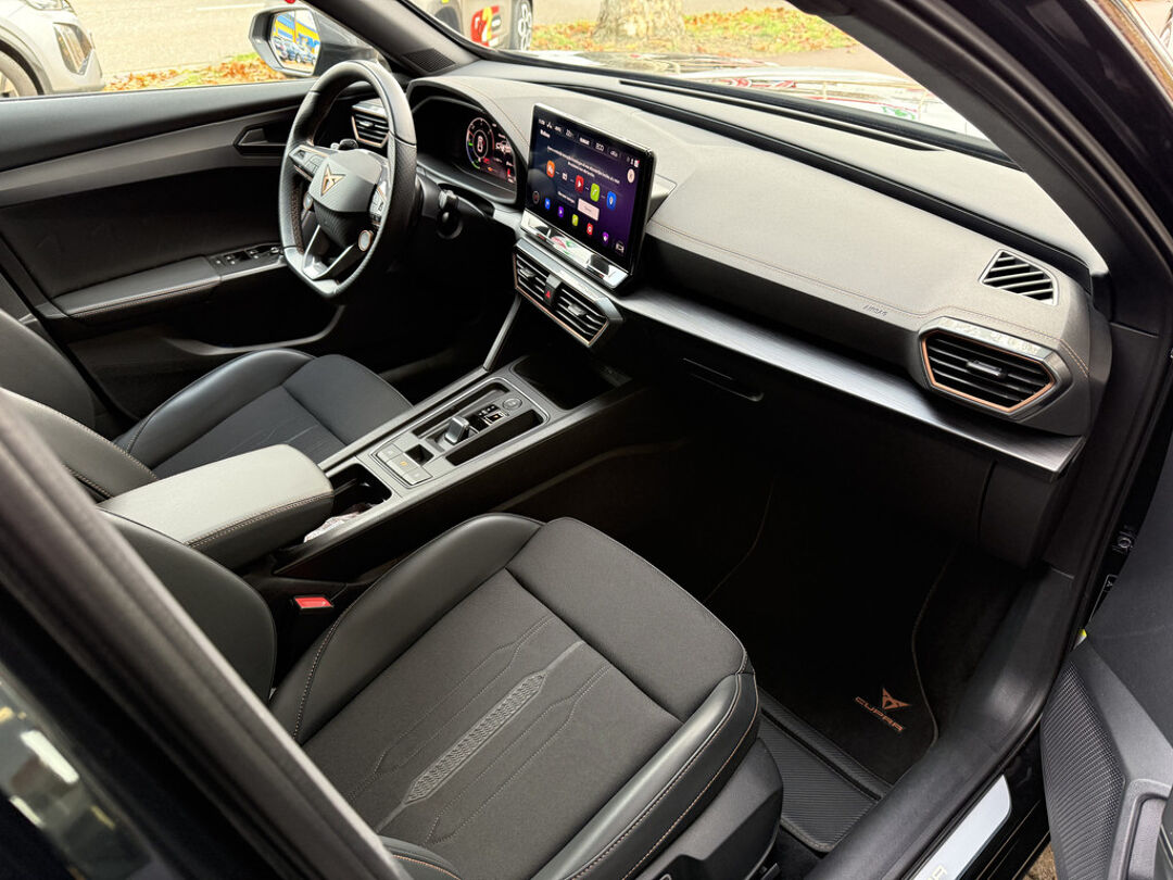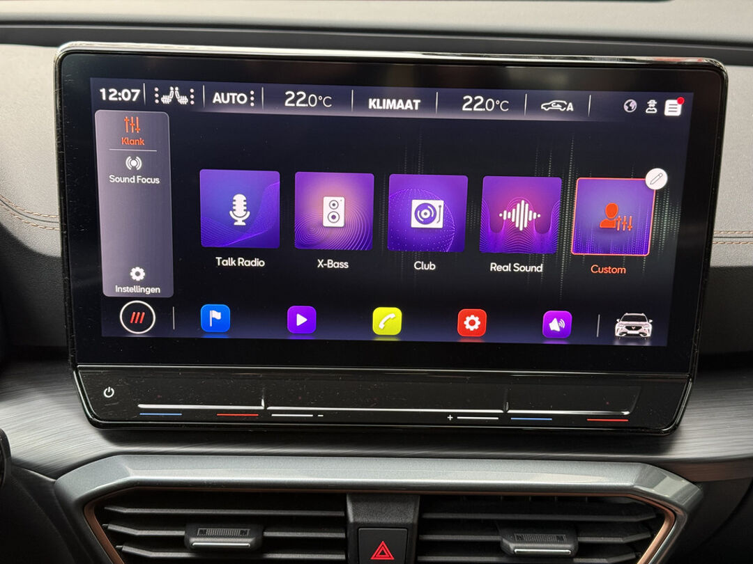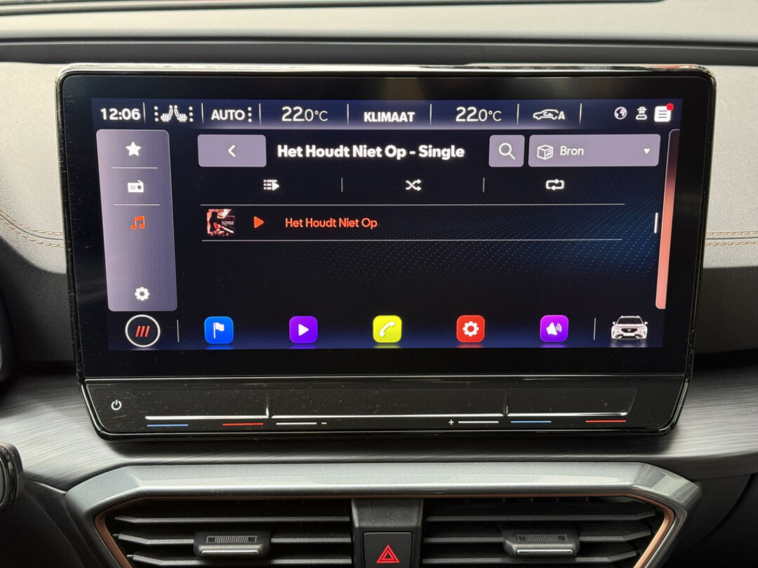 Zoals u mag verwachten van deze CUPRA Formentor is hij uitgerust met een reeks aan actieve veiligheidssystemen. De camera van de verkeersborddetectie herkent verschillende soorten verkeersborden en toont deze op het dashboard. Met het Lane-keeping systeem komt u nooit per ongeluk buiten de rijstrook. Onbedoeld bumperkleven is er niet bij, dankzij de forward collision warning. Die waarschuwt direct als een botsrisico met uw voorligger dreigt. Ook helpen het dodehoekdetectie, hill hold functie, vermoeidheidsherkenning, autonoom remsysteem en bandenspanningcontrolesysteem, uw rit tot een veilige rit te maken.